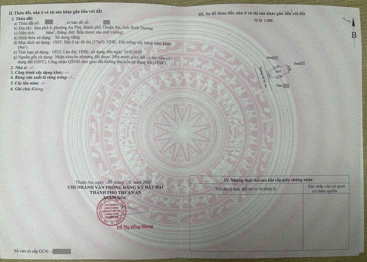 Bán đất 10x30m, đường D7 KDC An Thạnh P.An Thạnh