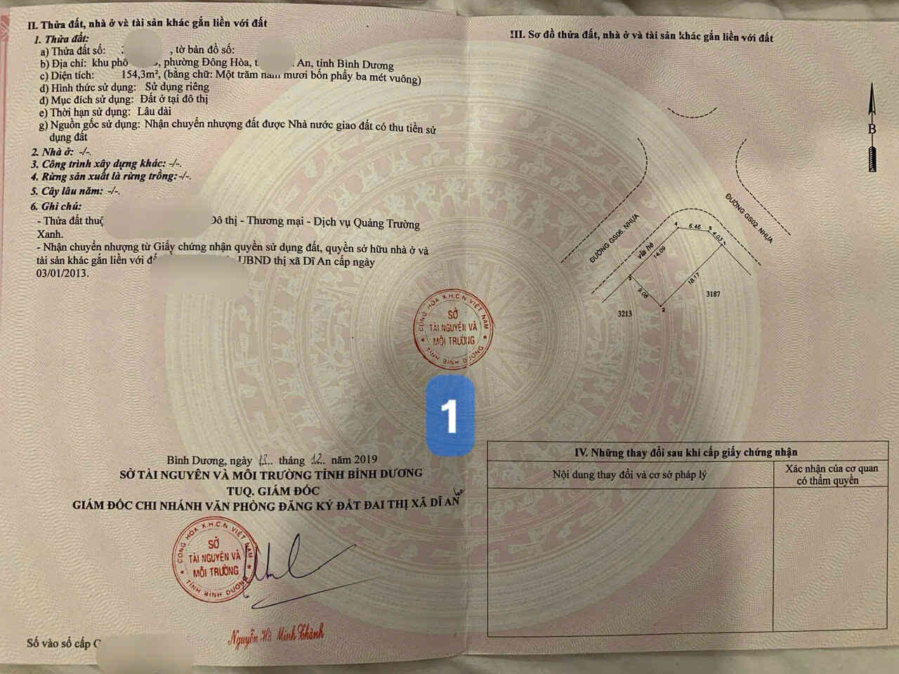 Bán đất 5.5x18m, hẻm Nguyễn Thái Học p. Tân Đông Hiệp gần chợ Dĩ An 1