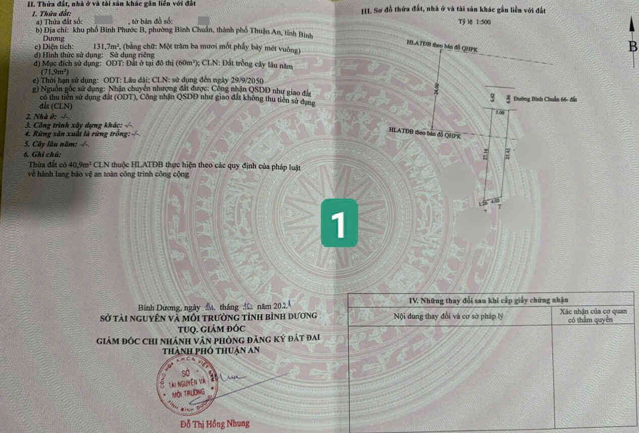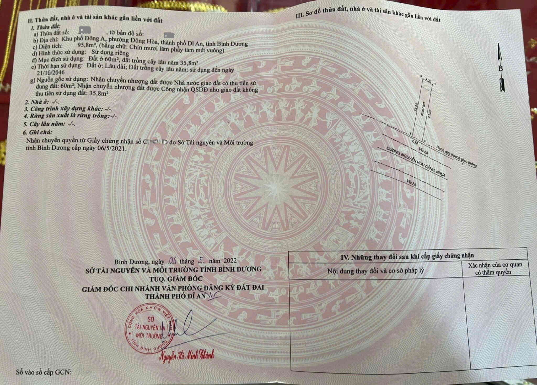 Bán đất 3.1x23m, mặt tiền Phạm Ngũ Lão p. Dĩ An gần chợ Dĩ An 1