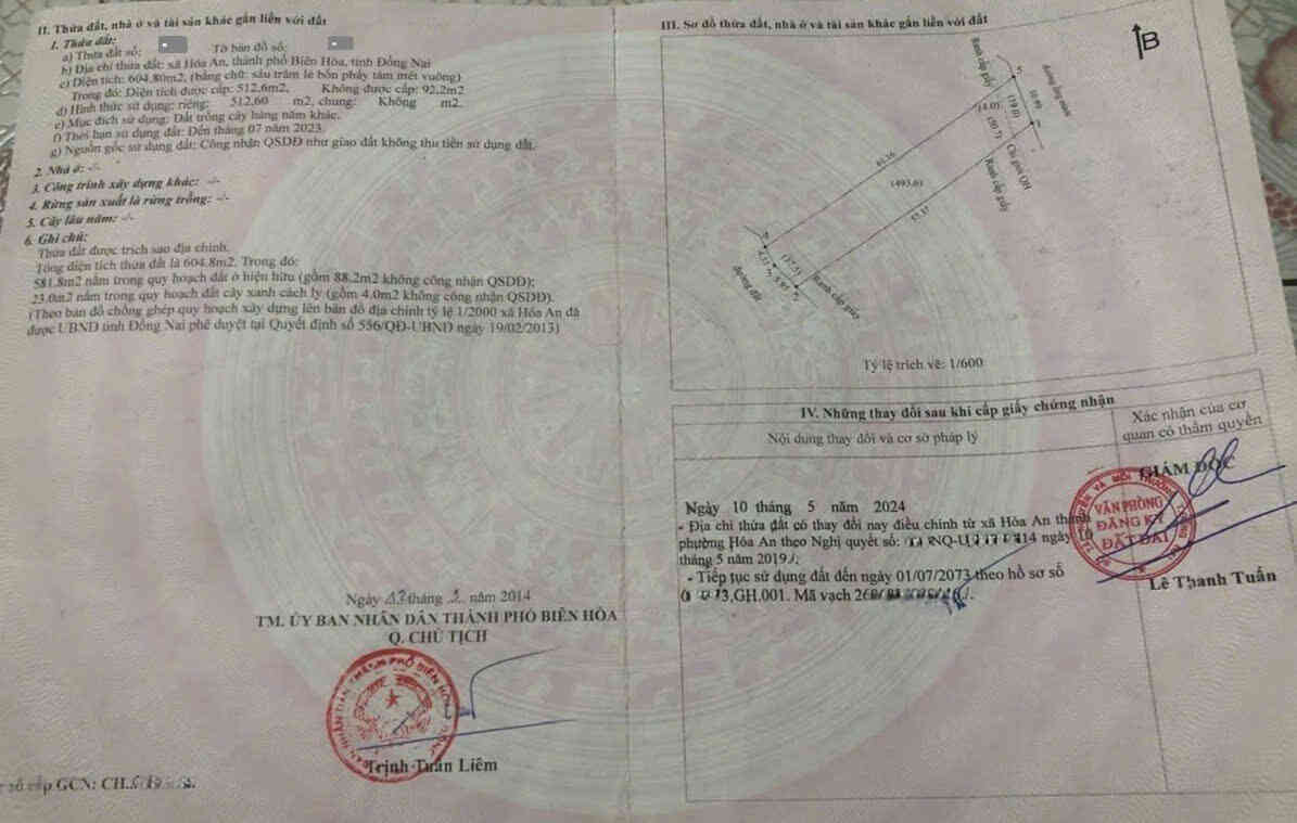 Bán đất 5x38m, mặt tiền đường Cách Mạng Tháng 8 p. Bình Nhâm