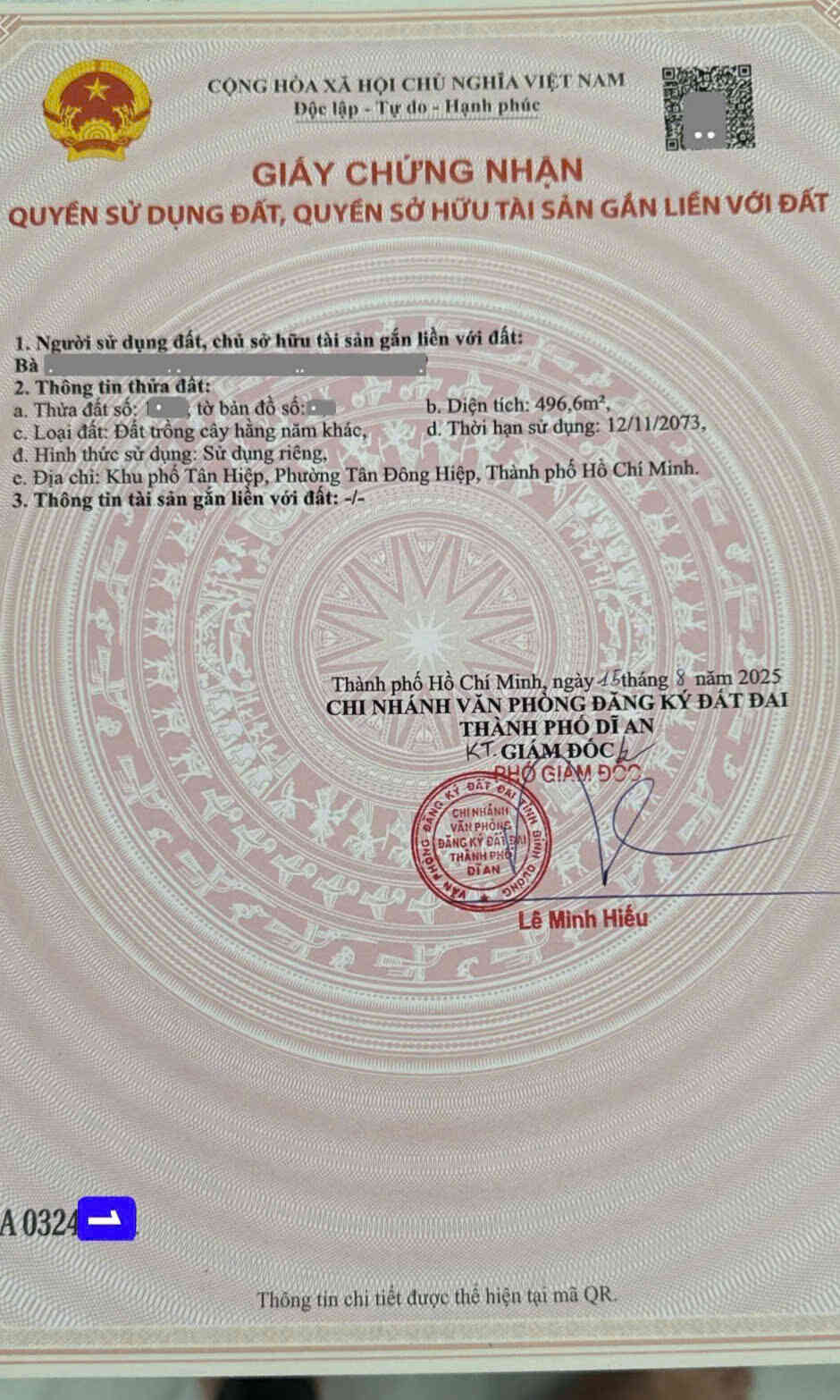 Bán đất 4x24m, hẻm Trần Thị Dương p. Tân Đông Hiệp gần Ngã 4 Chiêu Liêu