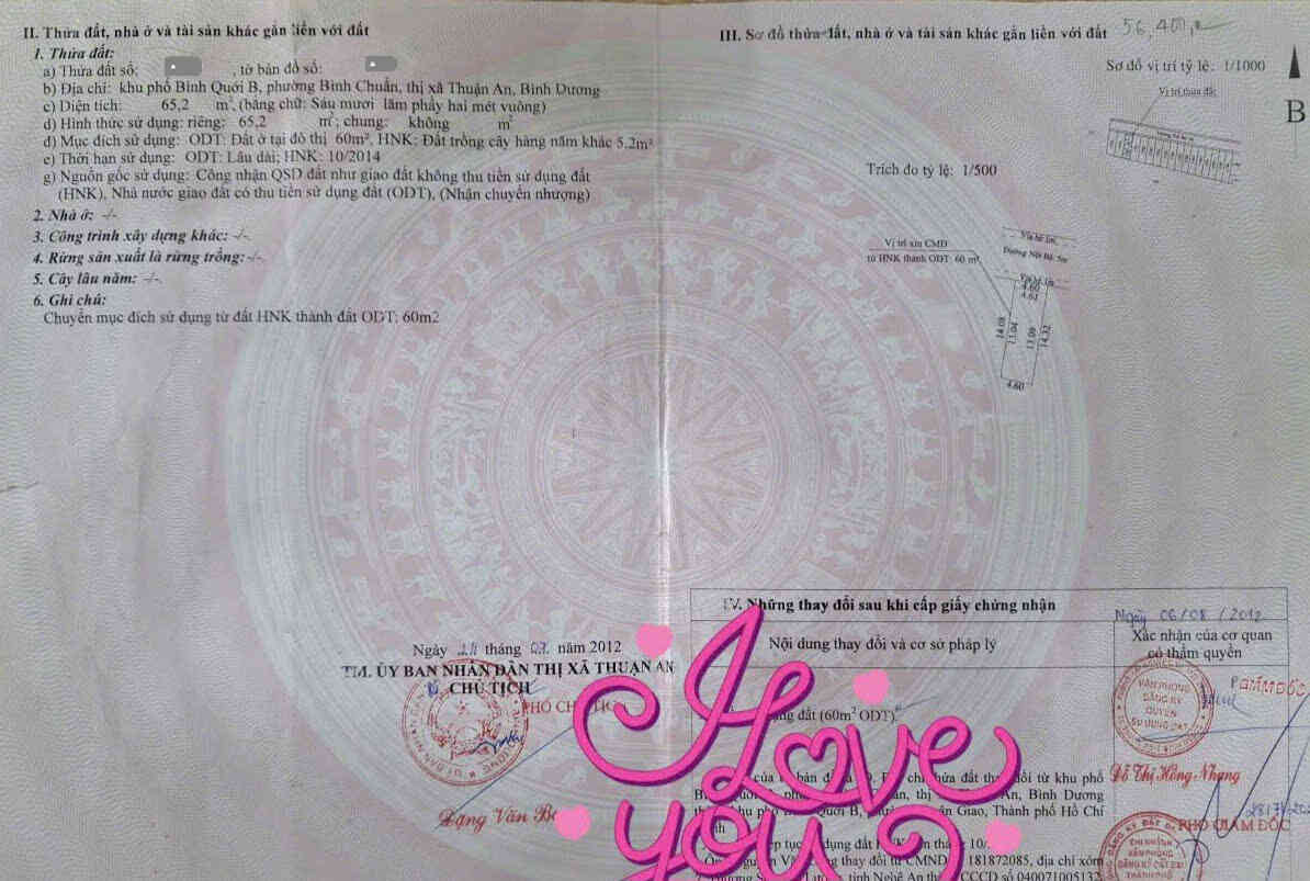 Bán lô góc 6x16m, hẻm Tân An p. Tân Đông Hiệp, thổ cư 100%