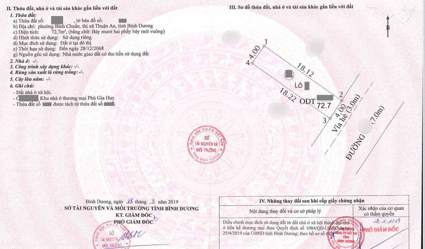 Bán đất 4.3×12.3m, hẻm Nguyễn Tri Phương p. An Bình gần chợ Dĩ An 2