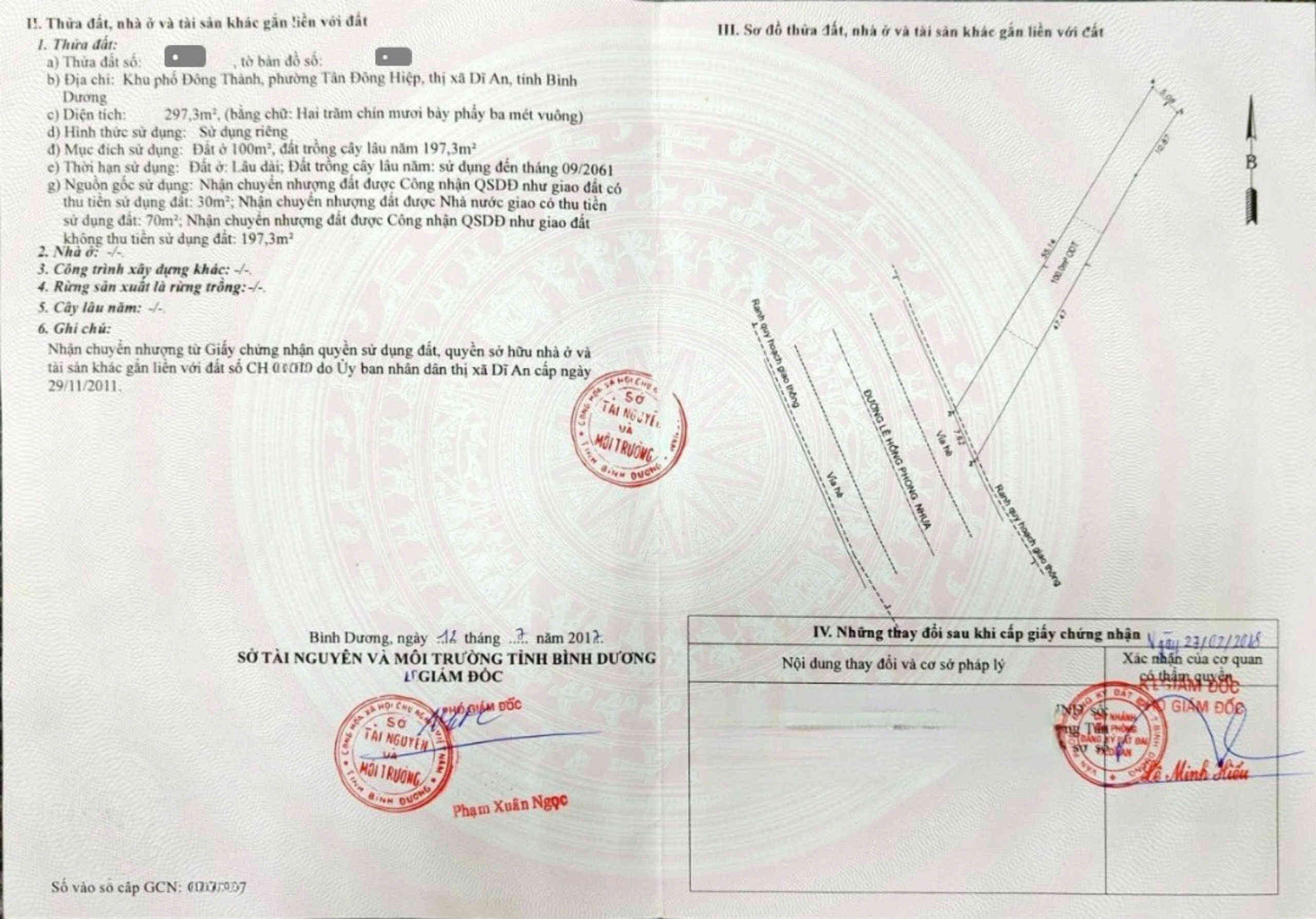 Bán đất 4.5x27m, mặt tiền Ngô Văn Sở p. Dĩ An gần chợ Dĩ An 1