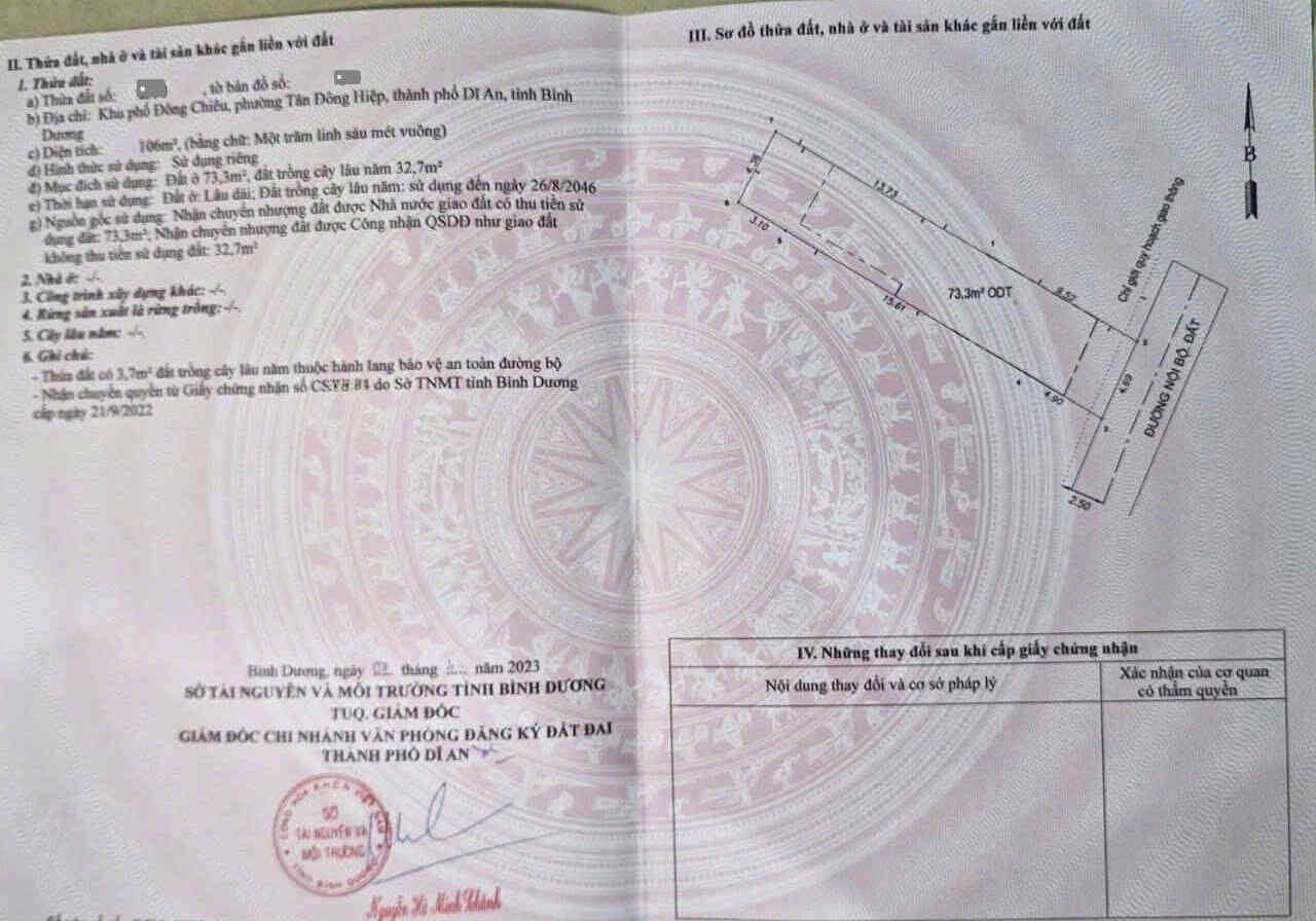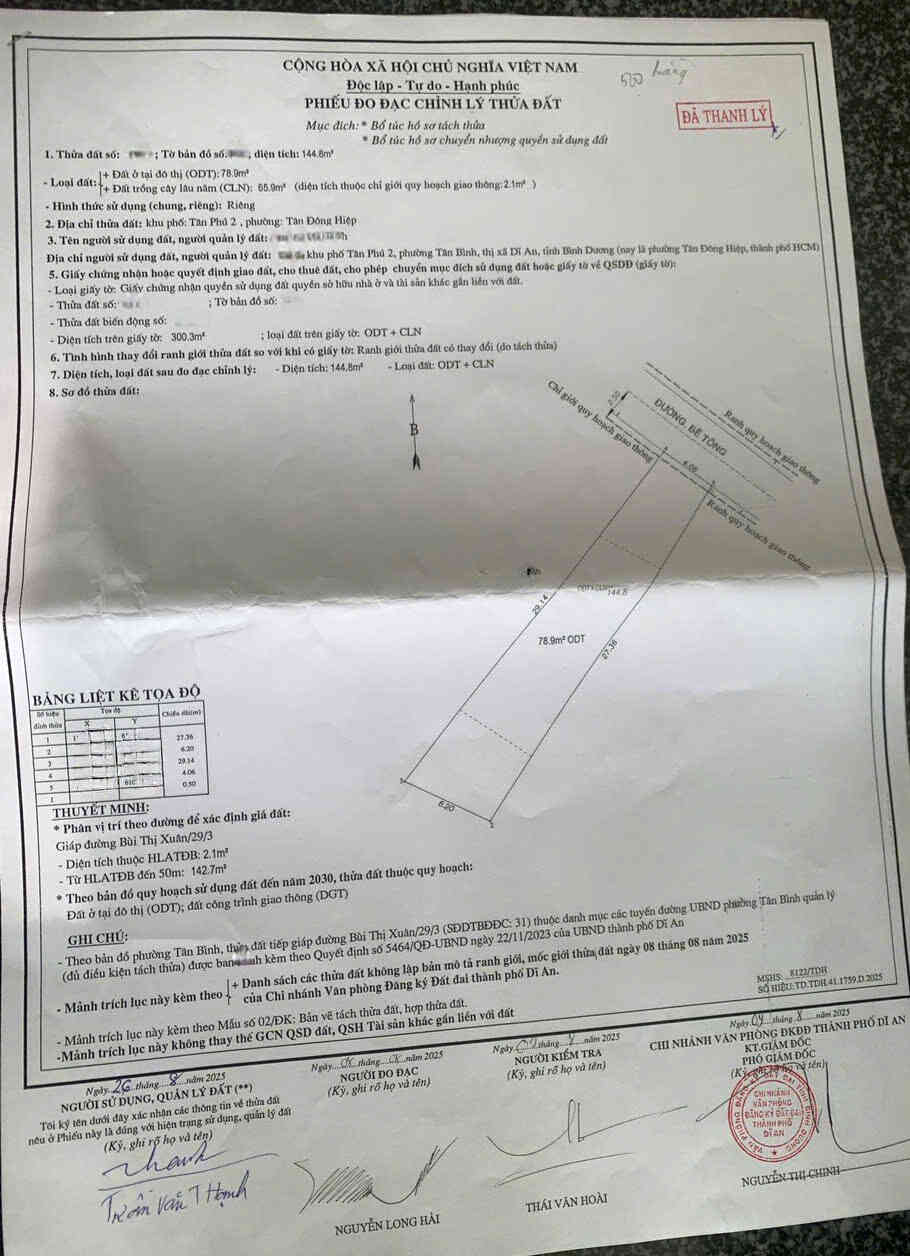 Bán đất 5x37m, hẻm Đông Thành p. Tân Đông Hiệp gần Ngã 3 Cây Điệp