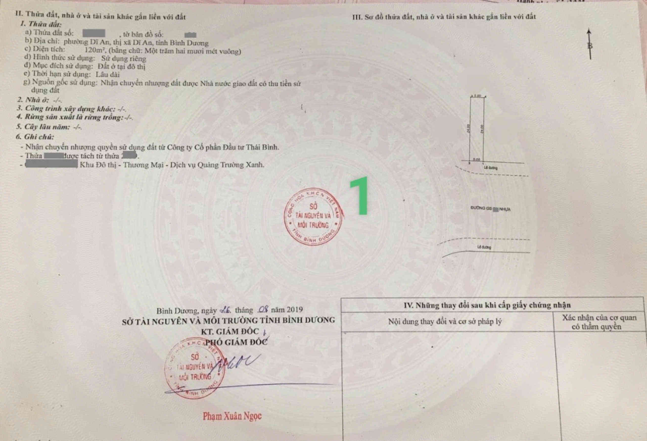 Bán nhà 1T1L vị trí VIP 15x124m, mặt tiền GS1 p.Đông Hòa, thổ cư 100%