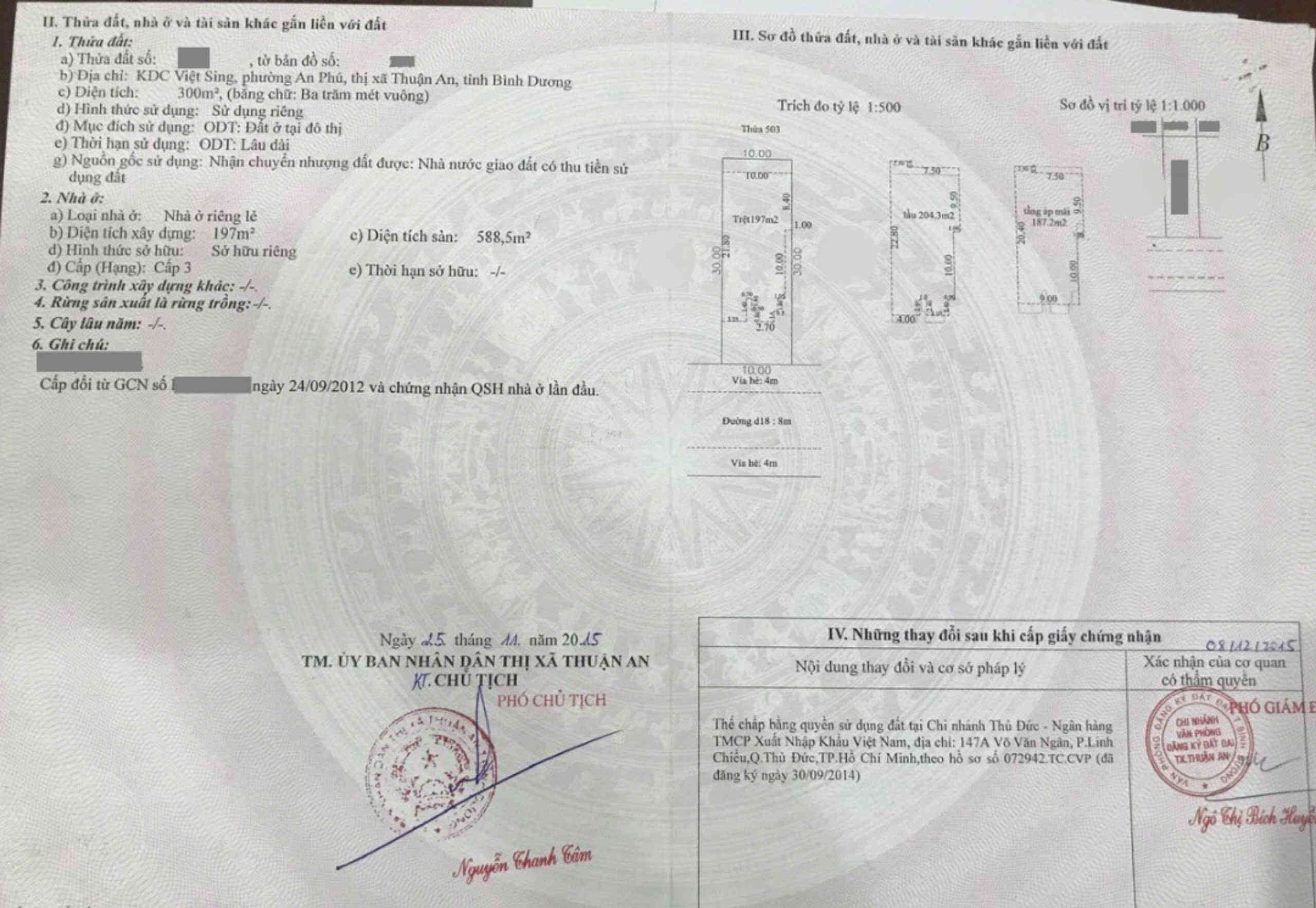 Bán biệt thự 1T2L 10x30m hoàn công, đường D18 KDC Việt Sing p. An Phú
