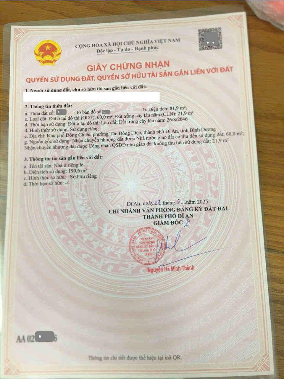 | Tỉnh/Thành | Tân Đông Hiệp, TP. Dĩ An |