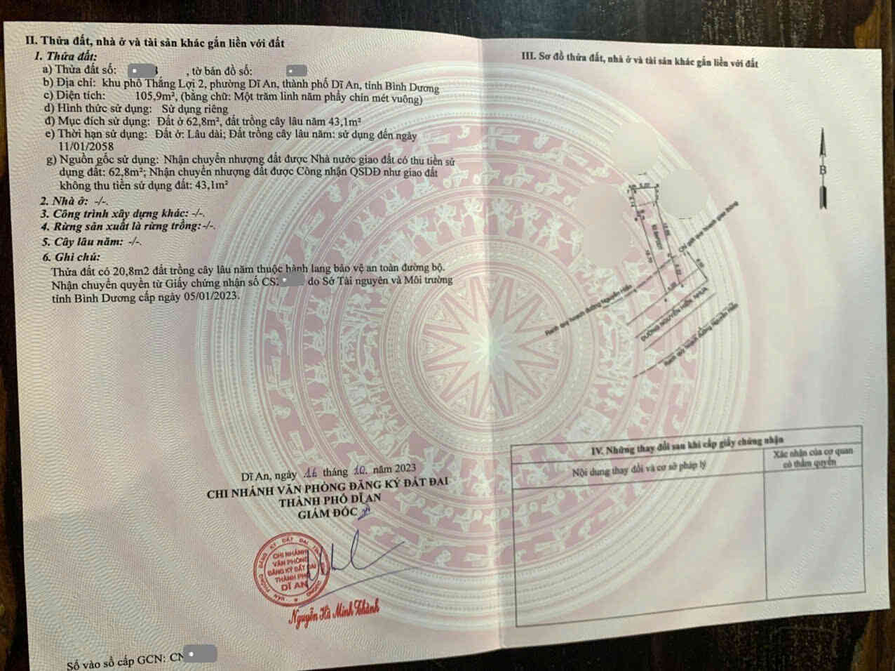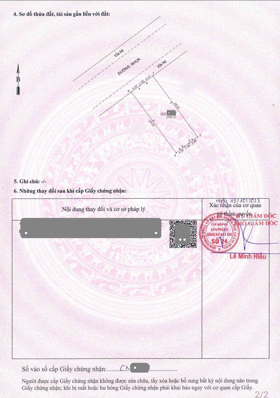 – Diện tích: 121.6m2(8.3x16m), thổ cư 79.5m2, lộ giới vào 19.9m2