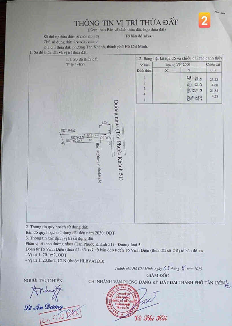 + Lô 2: 90.1m2(4x23m), thổ cư 69.7m2