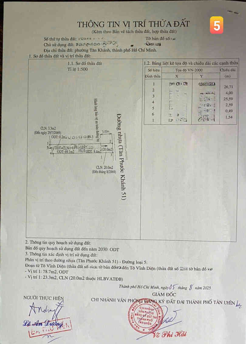 + Lô 5: 107.3m2(4x27m), thổ cư 75.5m2