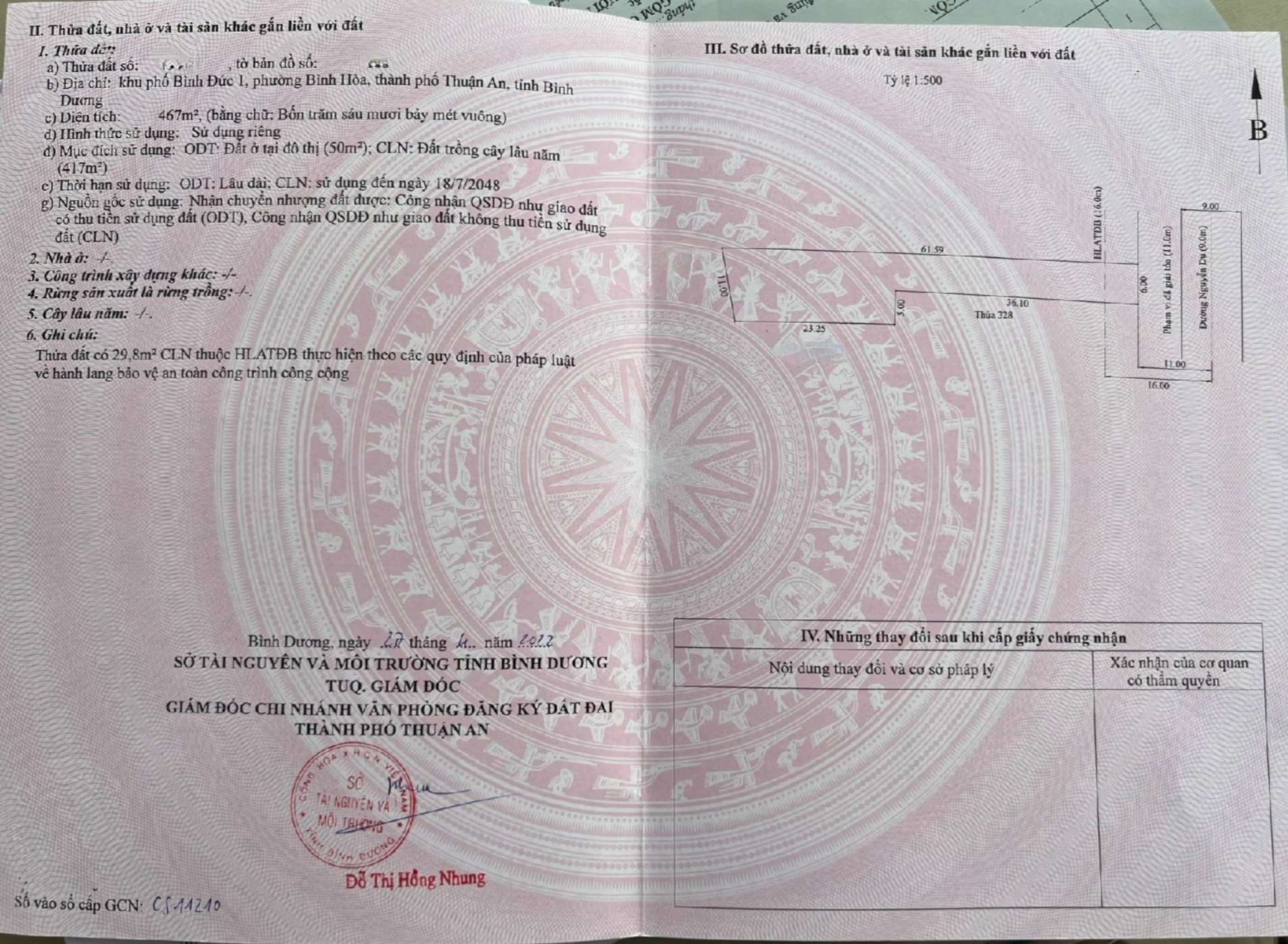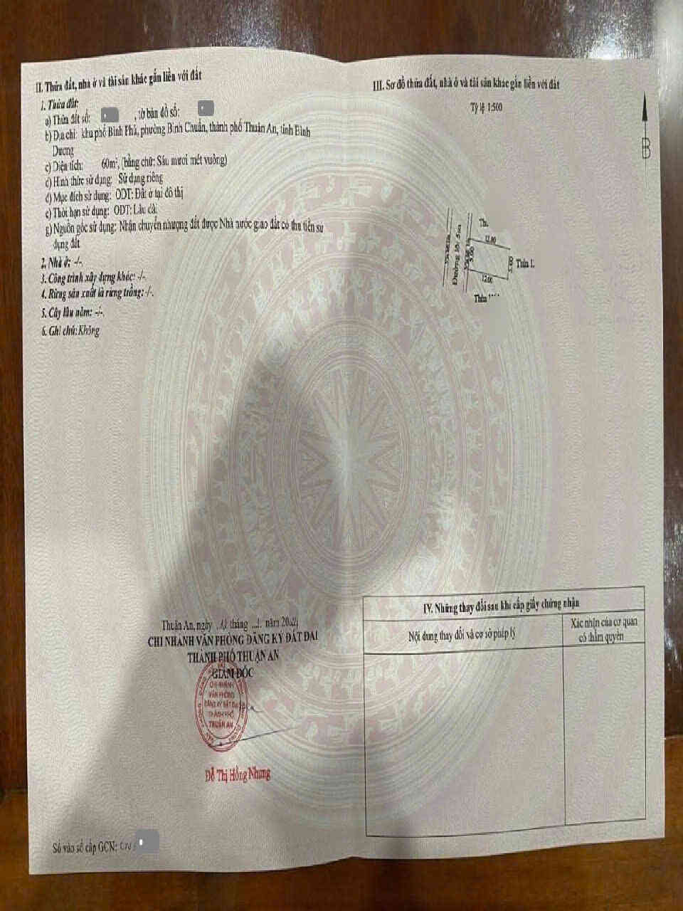 – Diện tích: 125m2(5x25m), thổ cư 60m2, lộ giới vào 20m2