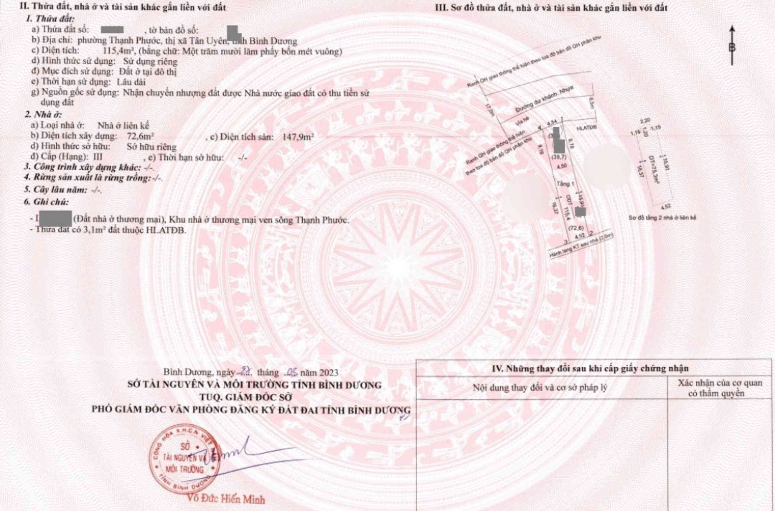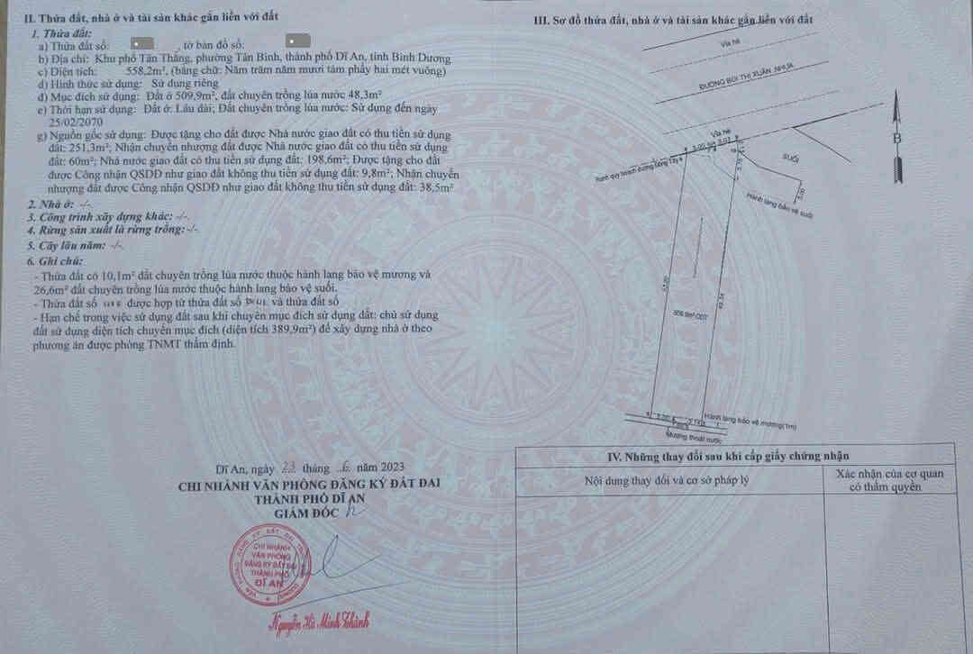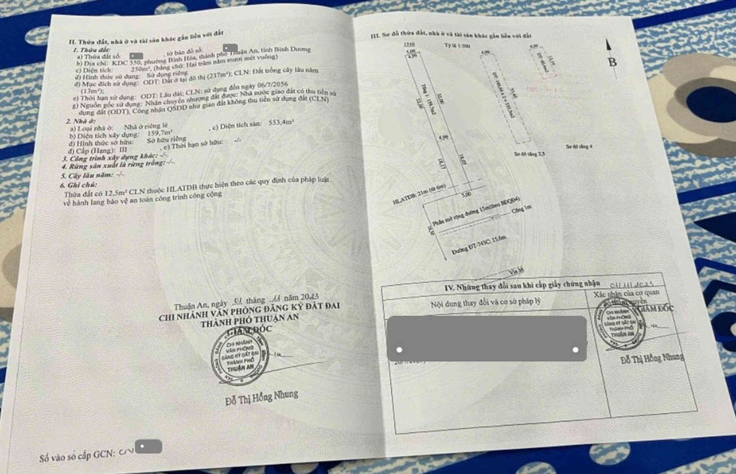 – Diện tích: 200m2(7.7x25m, nở hậu 8.3m), thổ cư 100%