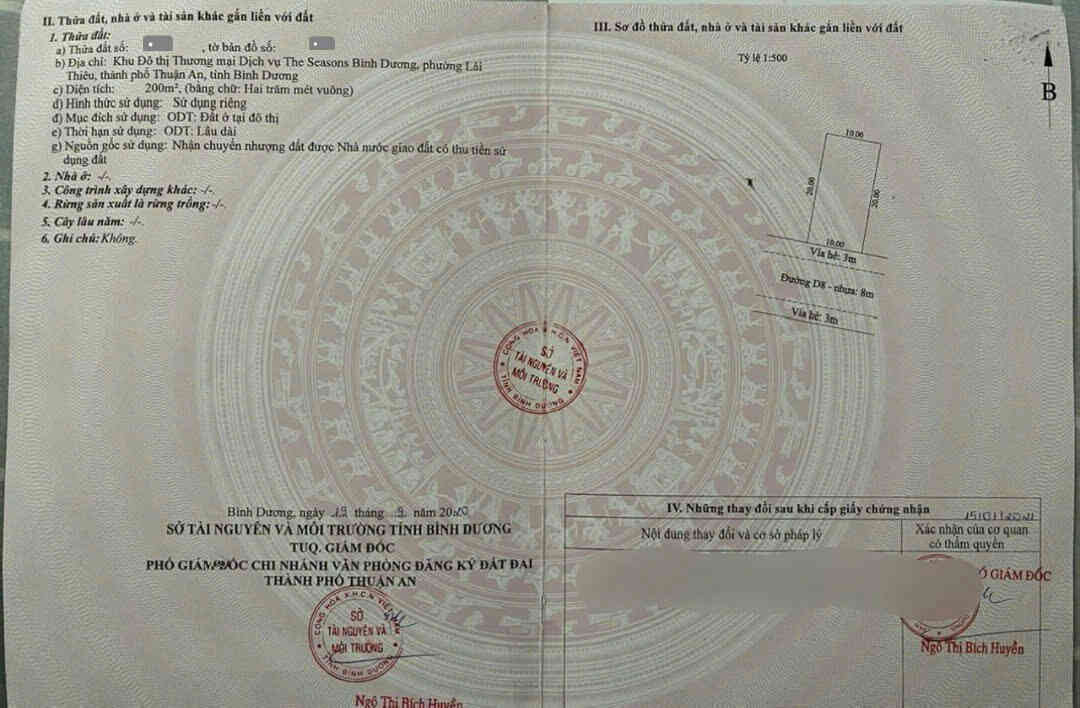 Bán đất biệt thự 10x20m, đường D8 KDC The Seasons p.Lái Thiêu kế Lotte Mart
