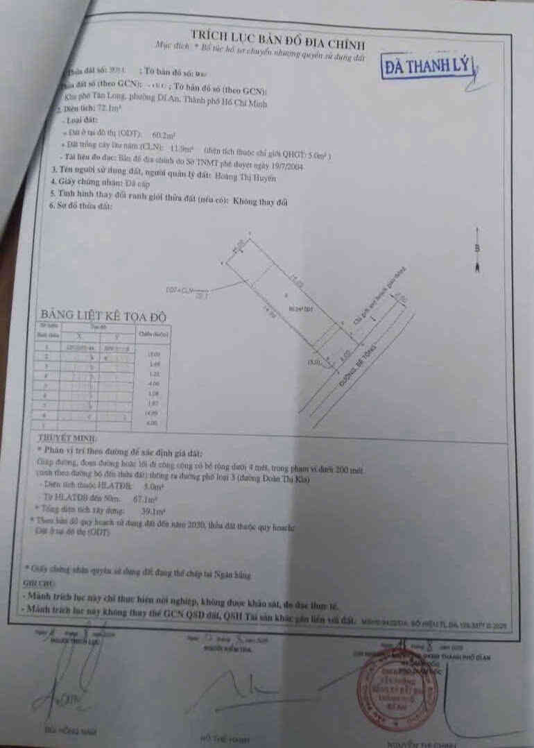 – Diện tích: 141m2(5x28m), thổ cư 70m2, quy hoạch mới không bị vào lộ giới