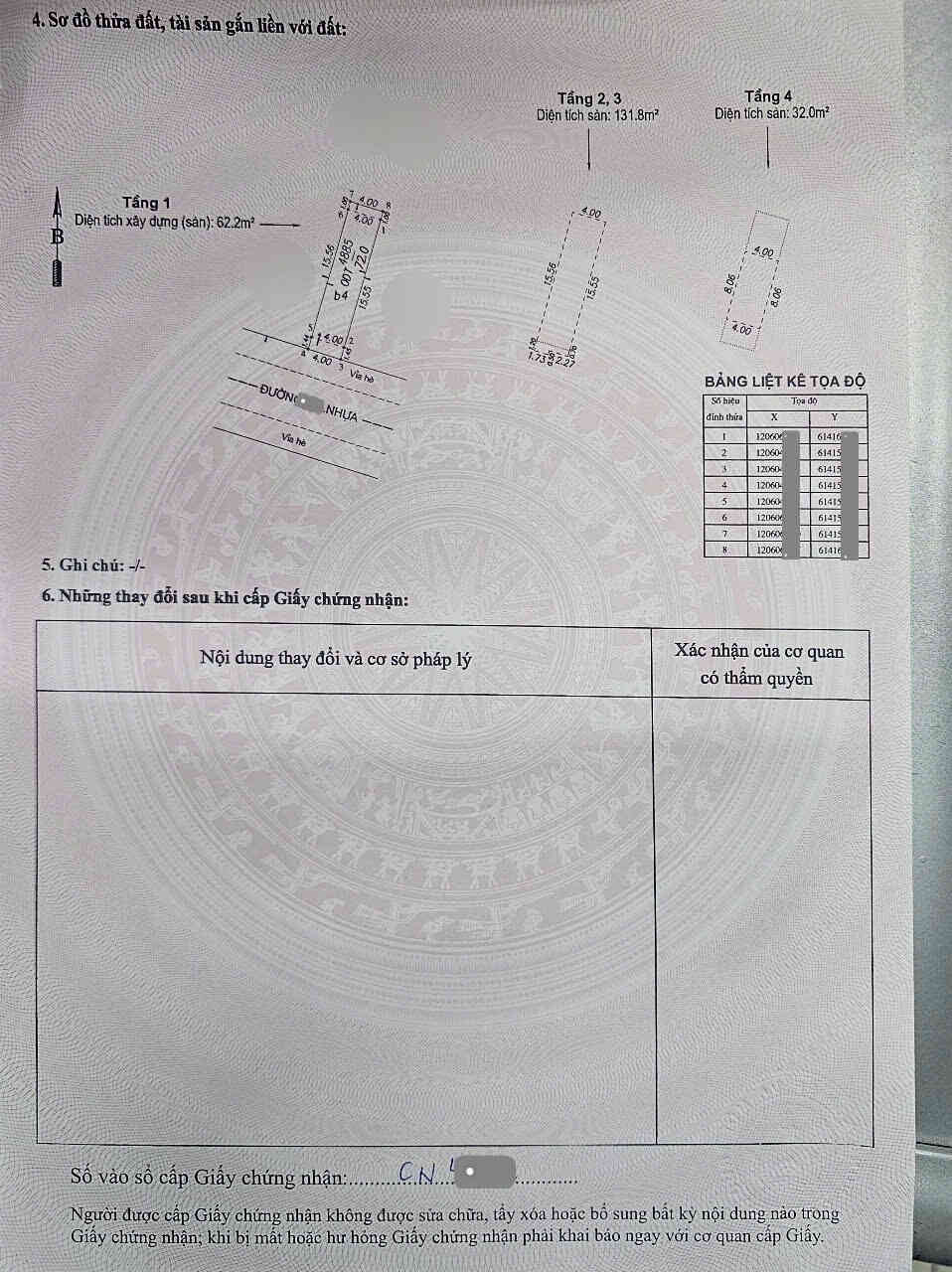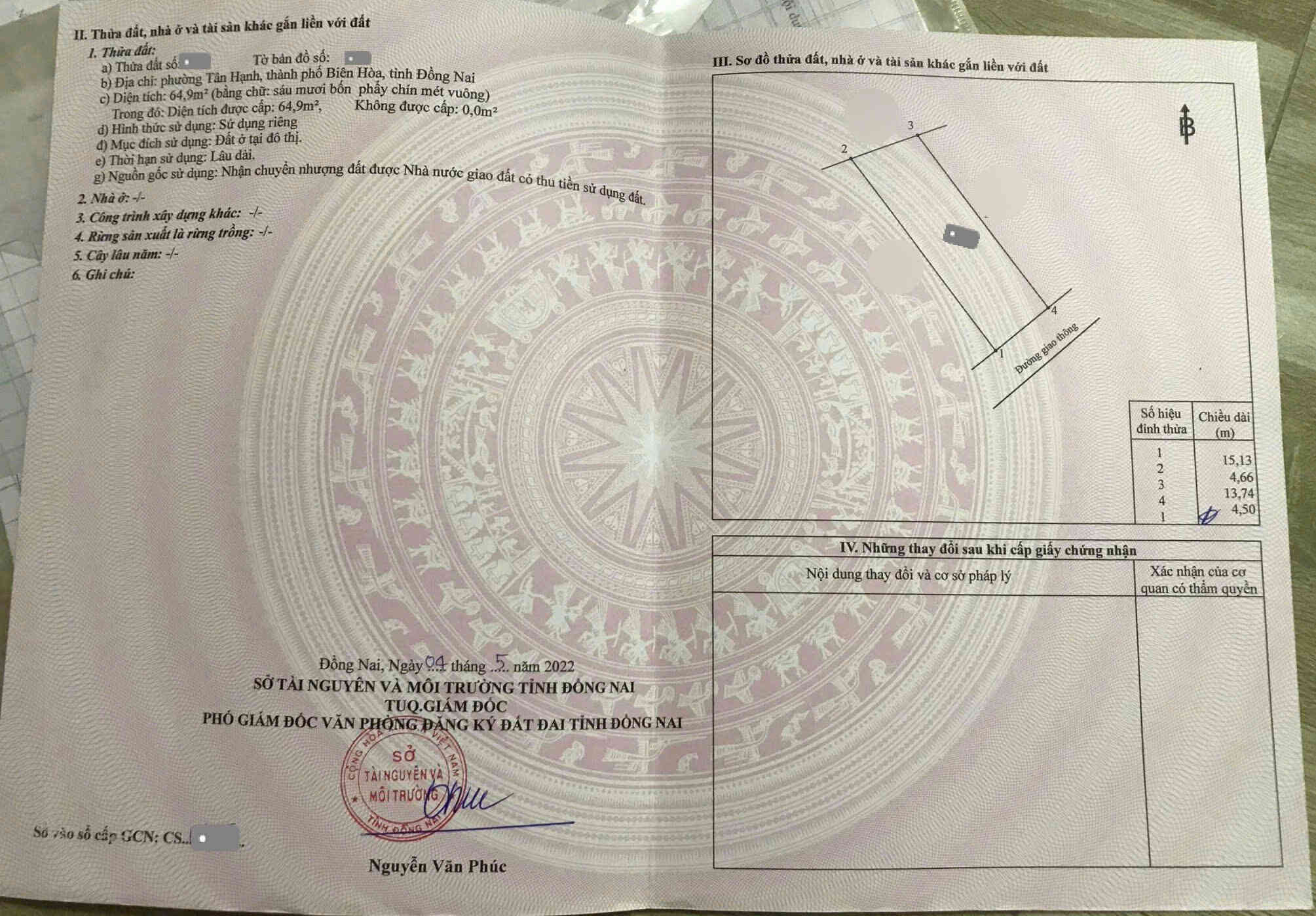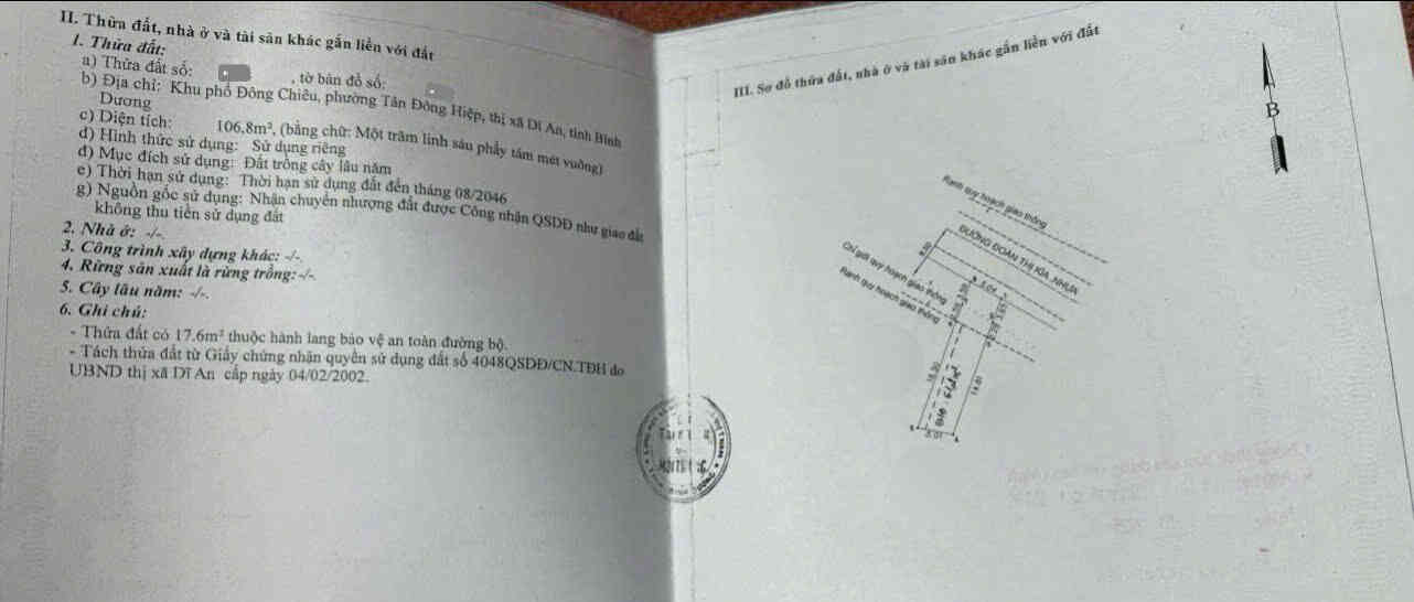 – Diện tích: 142.4m2(5×28.5m), thổ cư 111.8m2