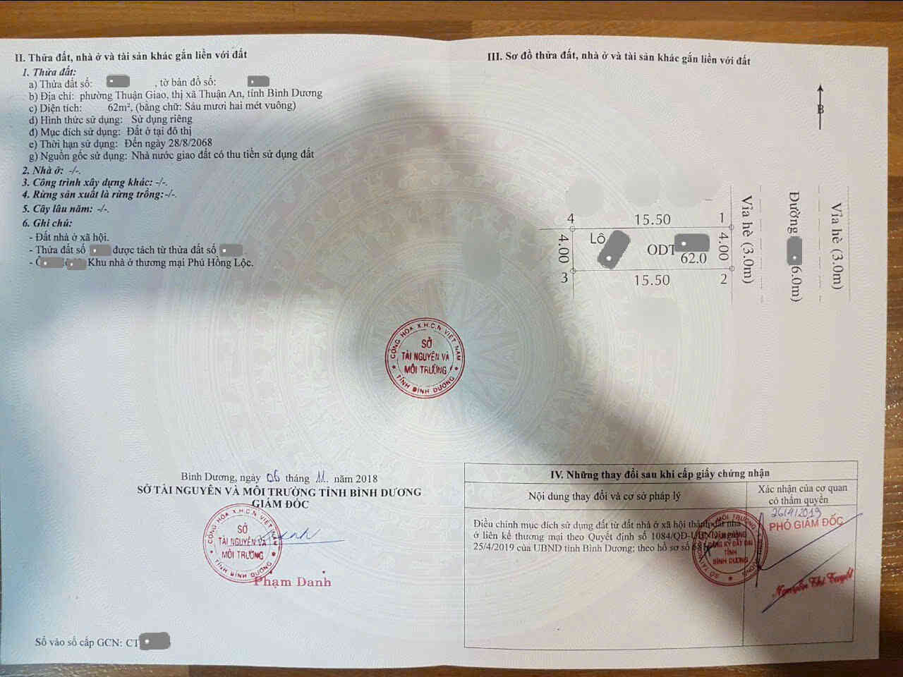 – Diện tích: 67.5m2(6.3x12m), thổ cư 100%
