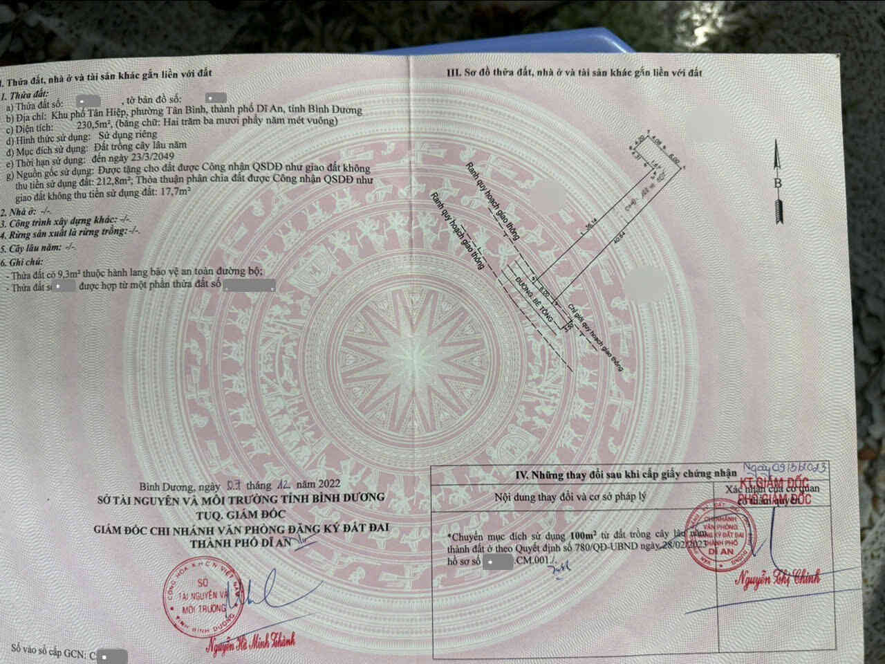 – Diện tích: 267.6m2(9.4x28m), thổ cư 100%, lộ giới vào 6m2