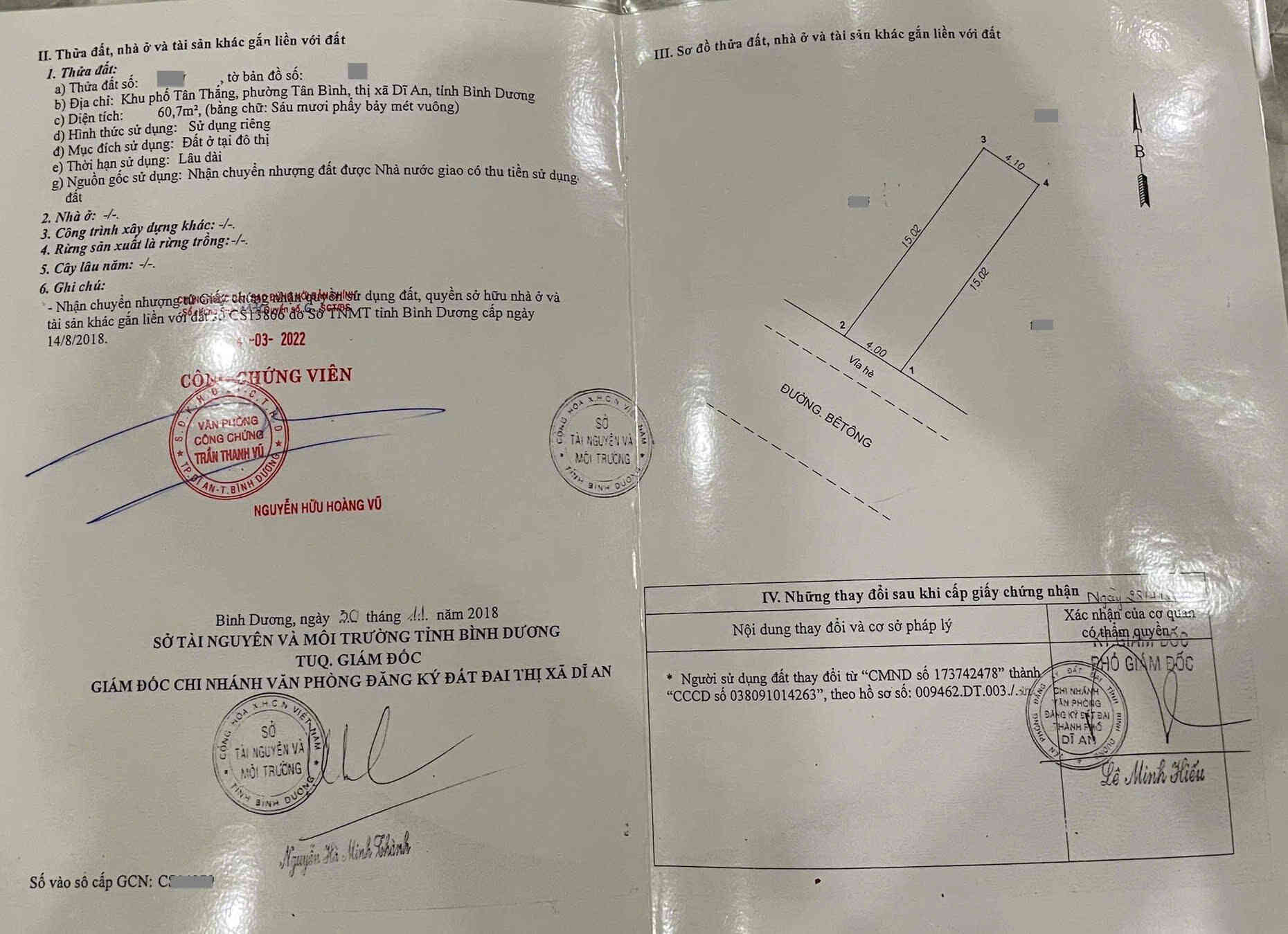 – Vị trí: Hẻm Huỳnh Thị Tươi, P. Tân Bình, TP. Dĩ An, Bình Dương