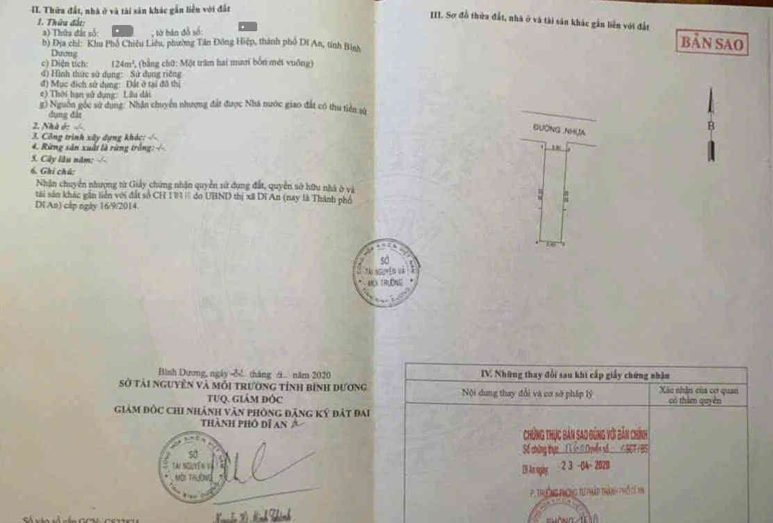 – Diện tích: 124m2(5x25m), thổ cư 94m2