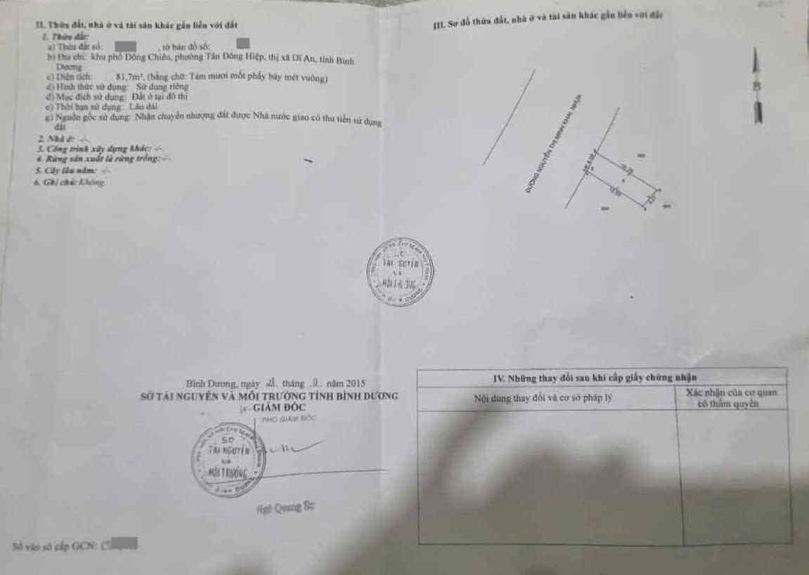 – Đất thuộc khu Trung Tâm Hành Chính Dĩ An