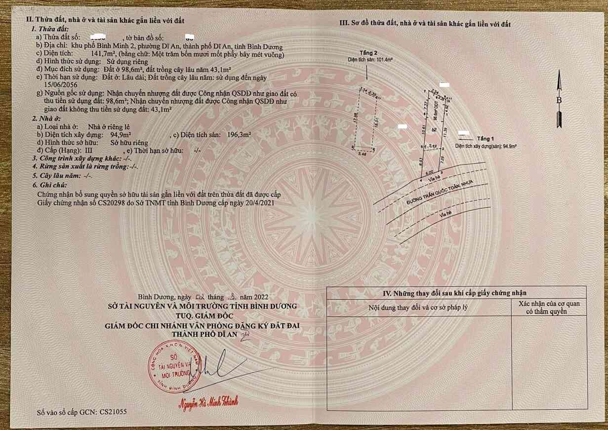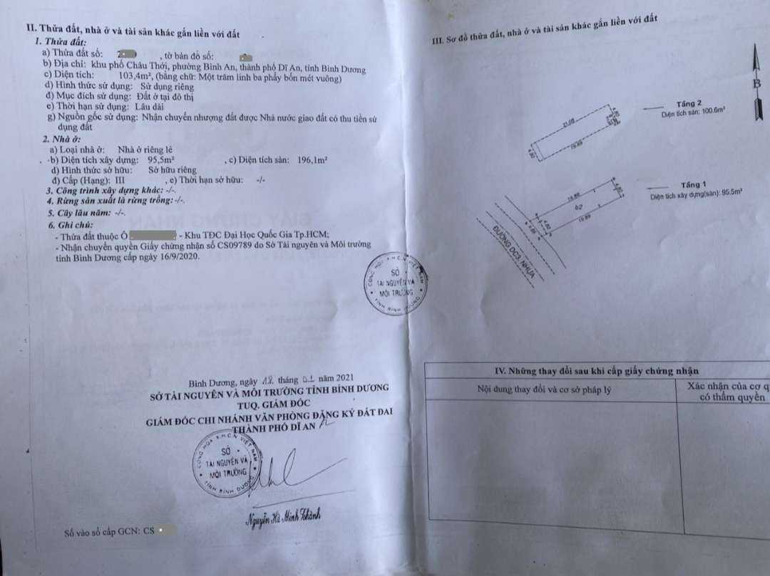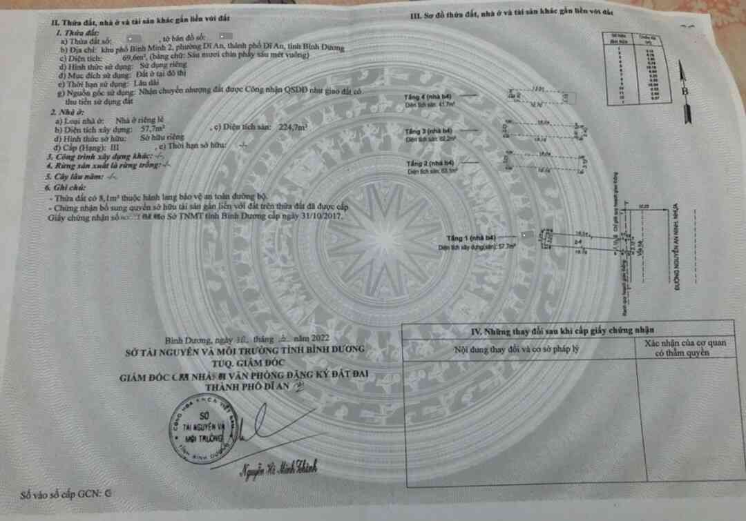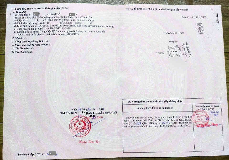 – Diện tích: 103.7m2(4×25.5m), thổ cư 63.5m2, lộ giới vào 15.8m2