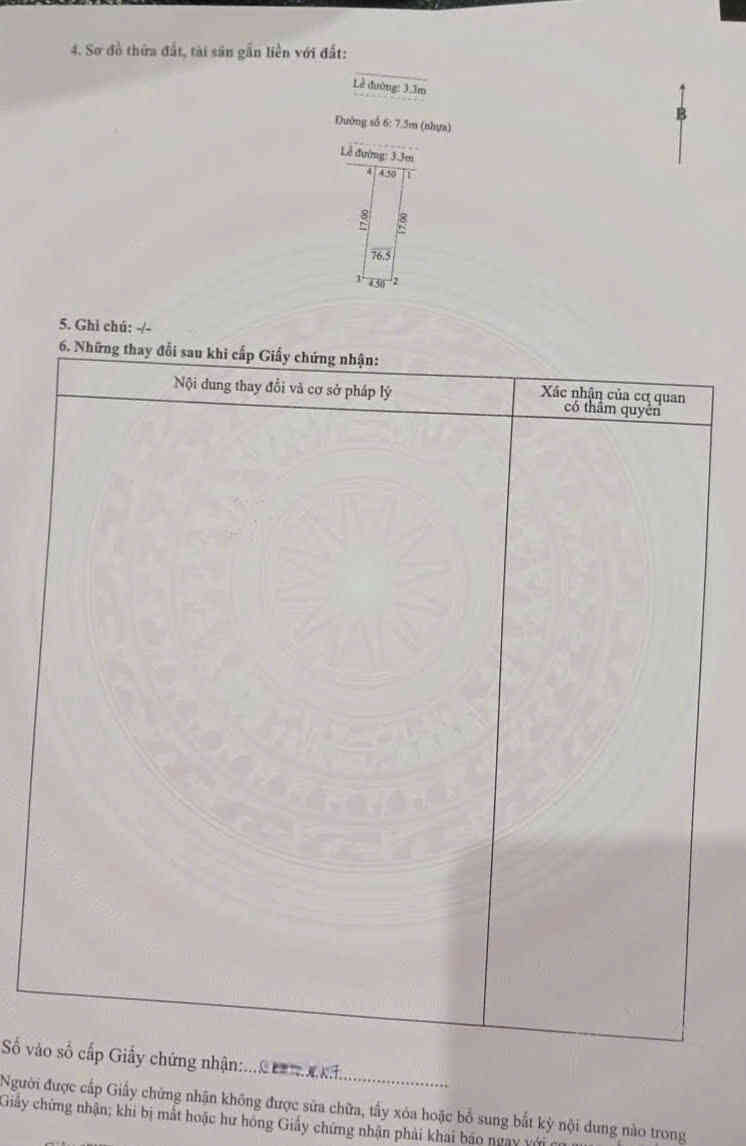 – Diện tích: 75m2(4.6×16.7m), thổ cư 61m2, lộ giới vào 4.5m2