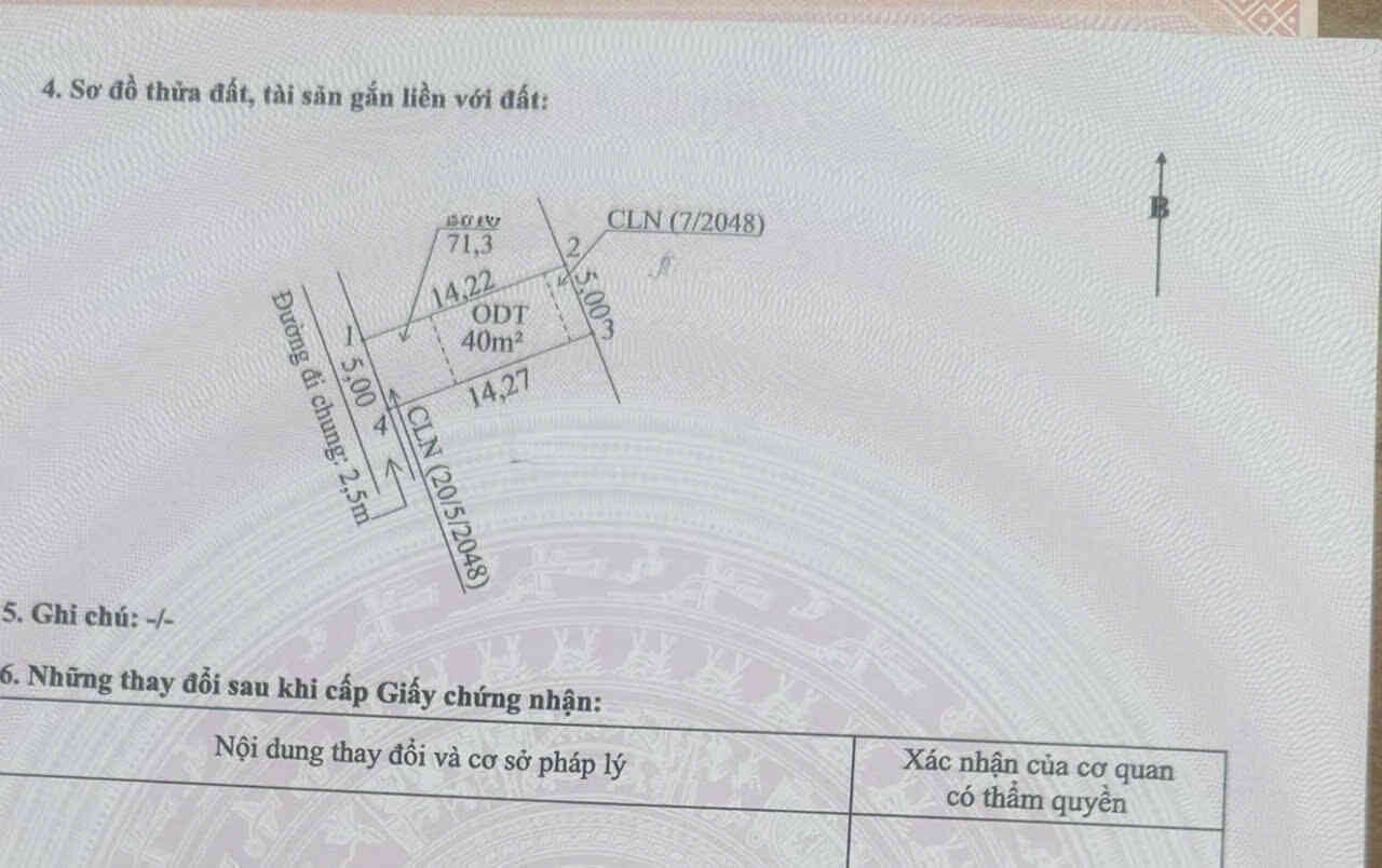 – Diện tích: 129.8m2(5×26.4m), thổ cư 80m2, lộ giới vào 19.4m2