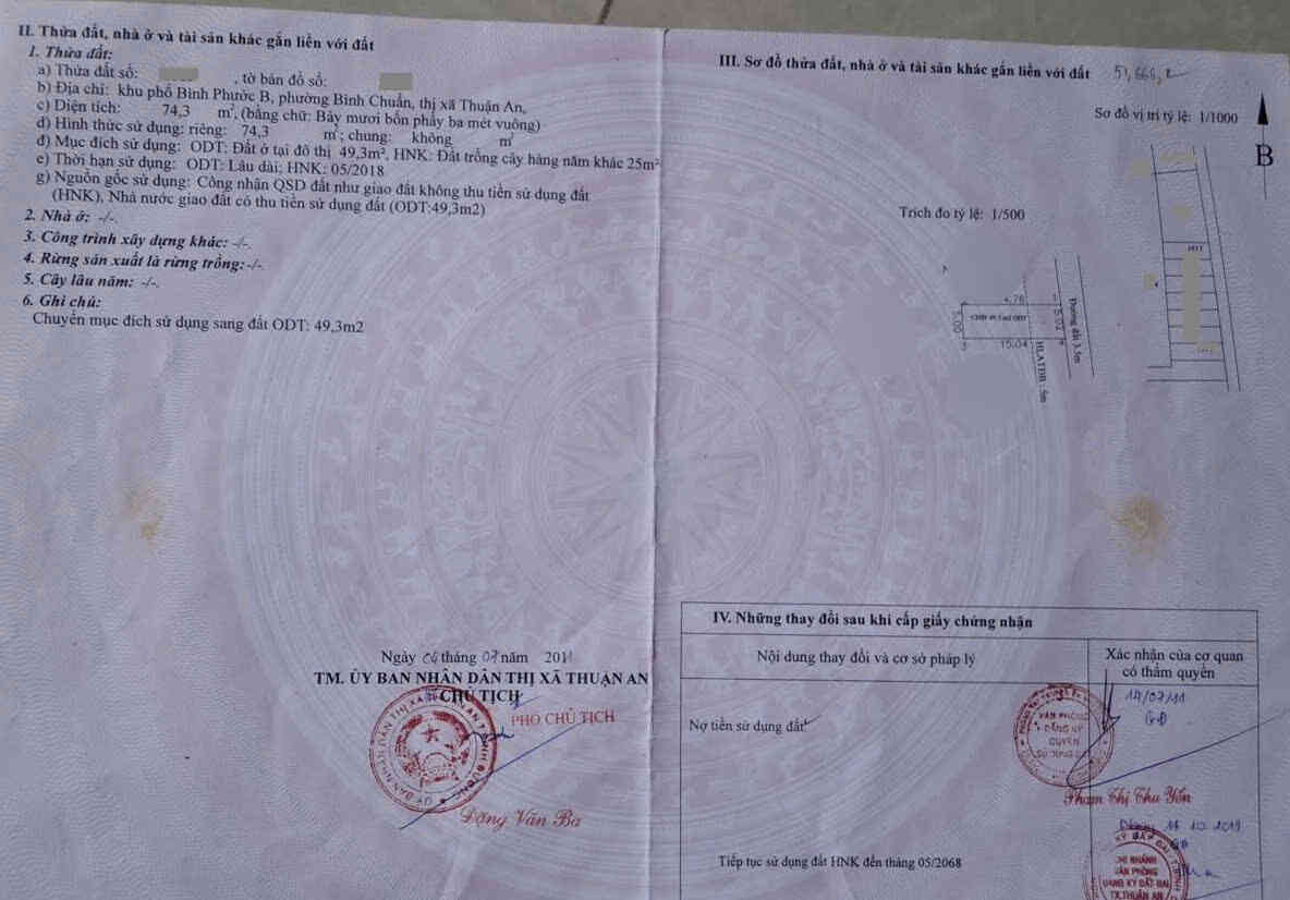– Diện tích: 75.4m2(4×18.5m), thổ cư 100%