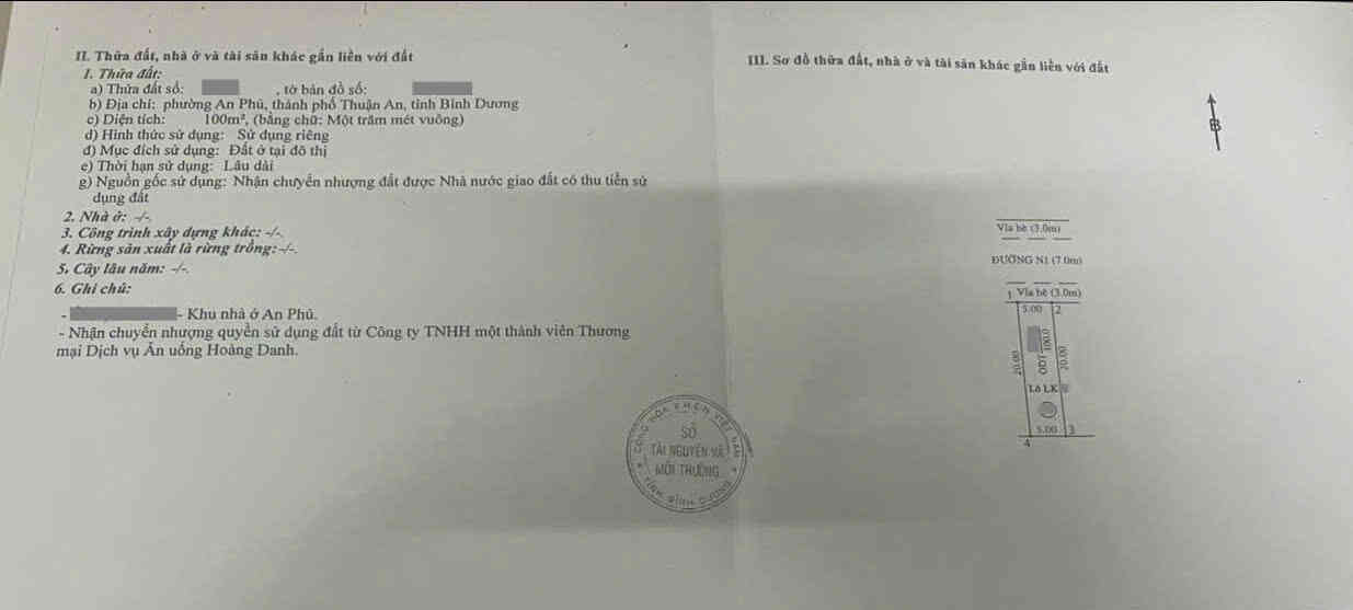 – Diện tích: 104m2(5x21m), thổ cư 74.8m2, lộ giới vào 29.2m2